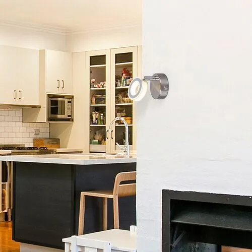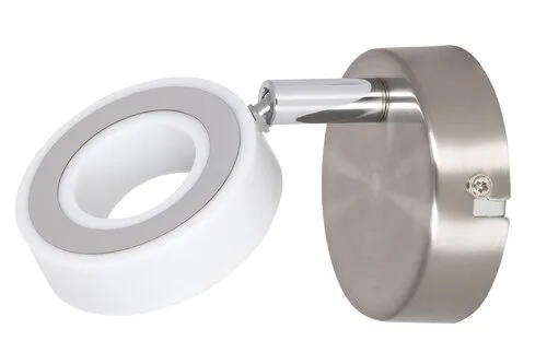 Modern megjelenésű fali spotlámpa beépített energiatakarékos LED izzóval. Króm színű, fémből készített lámpatest és pozícionálható, műanyag lámpabúra IP20-as védettséggel. A beépített LED izzó teljesítménye 4,5W, amelyhez 400 lumen fényerő társul. Színhőmérséklete természetes fehér (4000 Kelvin). A lámpatestben a izzó nem cserélhető. 5 év garanciával!