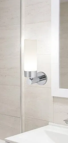 Modern megjelenésű fürdőszobai lámpa beépített energiatakarékos LED izzóval. 11 cm kinyúlású, 20 cm magas, króm színű fém lámpatest és opálüveg lámpabúra, IP44-es védettséggel. A beépített LED izzó 4W teljesítmény mellett 371 lumen fényerőt, valamint 4000 Kelvines, természetes fehér színű fényt kínál. A lámpatestben a izzó nem cserélhető. 5 év garanciával!
