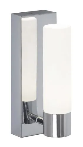 Modern megjelenésű fürdőszobai lámpa beépített energiatakarékos LED izzóval. 8 cm kinyúlású, 22 cm magas, króm színű fém lámpatest és fehér színű műanyag lámpabúra, IP44-es védettséggel. A beépített LED izzó 5W teljesítmény mellett 400 lumen fényerőt, valamint 4000 Kelvines, természetes fehér színű fényt kínál. A lámpatestben az izzó nem cserélhető. 5 év garanciával!
