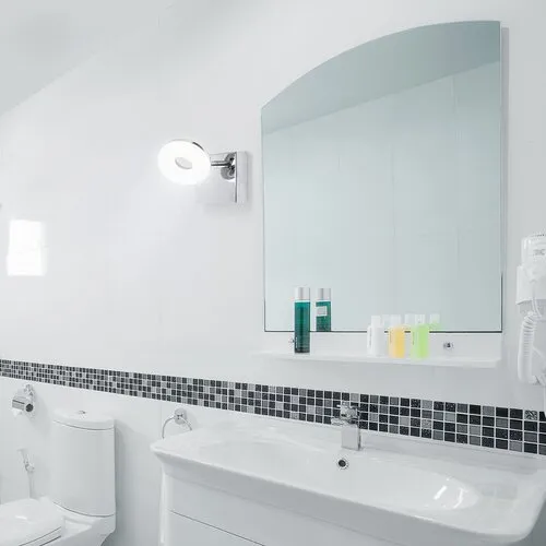 Modern megjelenésű fürdőszobai fali lámpa beépített, energiatakarékos LED fényforrással. 9 x 9 cm-es, 15 cm kinyúlású, króm színű, fémből készített lámpatest és fehér színű, műanyag lámpabúra, IP44-es védettséggel. A beépített LED fényforrás A+ energiaosztály besorolású és 5W teljesítmény mellett 465 lumenes fényerőt és 4000 Kelvines, természetes fehér színű fényt kínál. 5 év garanciával. A lámpatestbe beépített fényforrás nem cserélhető.