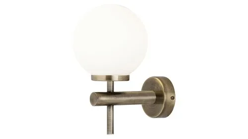 Az Avery fürdőszobai lámpa nagy kedvence lehet mindenkinek, aki otthonában előnyben részesíti a hagyományos, ugyanakkor mutatós világítási megoldásokat. Ez a fémből és üvegből készült fali lámpa csodásan mutat a tükör mellett, ráadásul nyugodt szívvel használhatjuk vizes helyiségekben. IP44-es védettsége garantálja, hogy legfeljebb 1 mm átmérőjű tárgyak behatolása ellen, valamint bármilyen irányból fröccsenő víz ellen védett. Az antik bronz színű lámpatestet gömb alakú, opál üveg búra egészíti ki, amely alatt egy beépített, energiatakarékos LED fényforrás bújik meg. A fényforrás teljesítménye 6 W, fényereje 550 lumen, élettartama 30 000 óra. Színhőmérséklete 3000 K, ennek megfelelően meleg fehér fénnyel világít, kellemes, meghitt hangulatot teremtve a fürdőben. A fali lámpa méretei a következők: a búra átmérője 140 mm, magassága 190 mm, kinyúlása 170 mm. Az Avery fürdőszobai lámpára 5 év garanciát vállalunk.