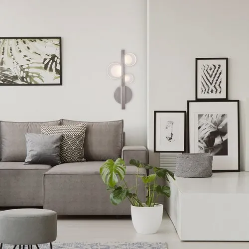 A Lorraine fali lámpát elsősorban azoknak ajánljuk, akik modern stílusú kiegészítőt keresnek hálószobájukba vagy nappalijukba, de a minimál dizájnnal szemben előnyben részesítik az egyedi formatervezésű lámpákat. A fémből készült, szatin króm színű lámpatestet átlátszó búra egészíti ki, a modell különlegességét pedig a holdszerű motívumok és a különböző méretű, kerekded formák adják. A Lorraine beépített, energiatakarékos LED fényforrással rendelkezik. Az A energiaosztályba tartozó fényforrás teljesítménye 9 W, fényereje 500 lumen, színhőmérséklete 3000 K, élettartama pedig 20 000 óra. Meleg fehér fénnyel világítja meg környezetét, kellemes, meghitt hangulatot árasztva. A fali lámpa méretei a következők: szélessége 250 mm, magassága 425 mm, faltól való távolsága 150 mm. Erre a modellre 5 év garanciát vállalunk.