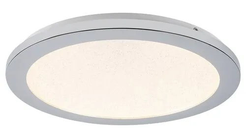 A Jeremy kerek mennyezeti lámpa remek választás lehet bármely modern berendezésű fürdőszobába. A fémből és műanyagból készült, króm és kristály színű lámpát cukrozott búrával látták el, és beépített, energiatakarékos LED fényforrással rendelkezik. A fényforrás teljesítménye 18 W, fényereje 1200 lumen, élettartama pedig 20 000 óra. 3000 K-es színhőmérsékletének megfelelően meleg fehér fénnyel világítja meg környezetét, kellemes, meghitt hangulatot teremtve. A lámpa fali kapcsolóval három lépésben dimmelhető, azaz fényerejét tetszés szerint változtathatjuk. A 300 mm átmérőjű lámpa extra vékony kivitelben készül, mennyezettől való távolsága mindössze 25 mm. IP44-es védettsége garantálja, hogy legfeljebb 1 mm átmérőjű tárgyak behatolása ellen, valamint bármilyen irányból fröccsenő víz ellen védett. A Jeremy fürdőszobai lámpára 5 év garanciát vállalunk.