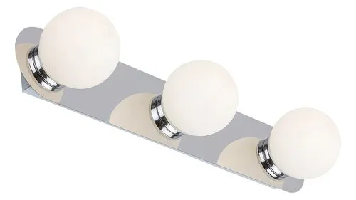 A modern formatervezésű, króm és fehér színkombinációban készült Becca hármas fürdőszobai mennyezeti lámpát azoknak ajánljuk, akik a gömbölyded formákat részesítik előnyben. A fürdőszobai lámpát felszerelhetjük a mosdó, illetve a tükör fölé, vagy bárhová a fürdőszoba mennyezetére. A lámpa három darab, egyenként legfeljebb 28 W teljesítményű, energiatakarékos fényforrással használható, a foglalatok típusa G9. Amennyiben modern hatást szeretnénk elérni, válasszunk hozzá természetes fehér fényű fényforrást. A fémből és üvegből készült modell IP44-es védettséggel rendelkezik, ami garantálja, hogy legfeljebb 1 mm átmérőjű tárgyak behatolása ellen, valamint bármilyen irányból fröccsenő víz ellen védett. A hármas mennyezeti lámpa teljes szélessége 450 mm. A Becca fürdőszobai lámpát fényforrás nélkül szállítjuk.