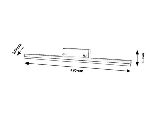 A modern stílusban készült Evan fürdőszobai fali lámpa nagyszerű választás lehet a mosdókagyló feletti terület megvilágításához. A matt fekete színű, fémből és alumíniumból készült lámpatestet fehér műanyagbúra egészíti ki. A lámpa beépített LED fényforrással rendelkezik, amelynek a teljesítménye 12 W, fényereje 1300 lumen, élettartama 20 000 óra. A fényforrás színhőmérséklete 4000 K, ennek megfelelően természetes fehér fénnyel világít. Az Evan IP44-es védettséggel rendelkezik, amely garantálja, hogy legfeljebb 1 mm átmérőjű tárgyak behatolása ellen, valamint bármilyen irányból fröccsenő víz ellen védett. A fürdőszobai fali lámpa méretei a következők: szélessége 490 mm, magassága 65 mm, faltól mért távolsága 105 mm. Erre a modellre 5 év garanciát vállalunk.