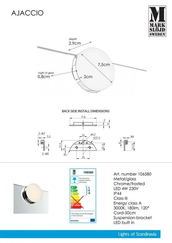 MARKSLÖJD AJACCIO Fali Lámpa króm