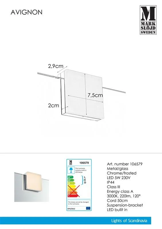 MARKSLÖJD AVIGNON Fali Lámpa króm