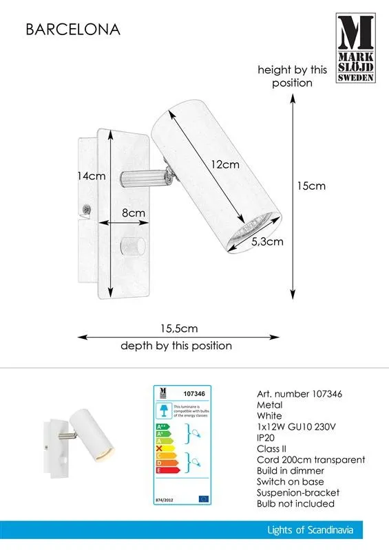 Markslöjd BARCELONA Kinkiet 1L Bialy