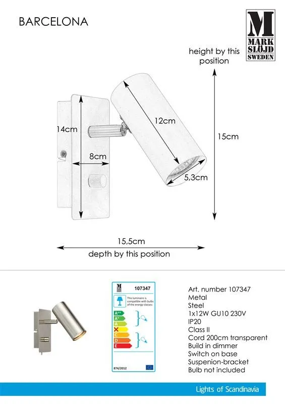 Markslöjd BARCELONA Kinkiet 1L Stal