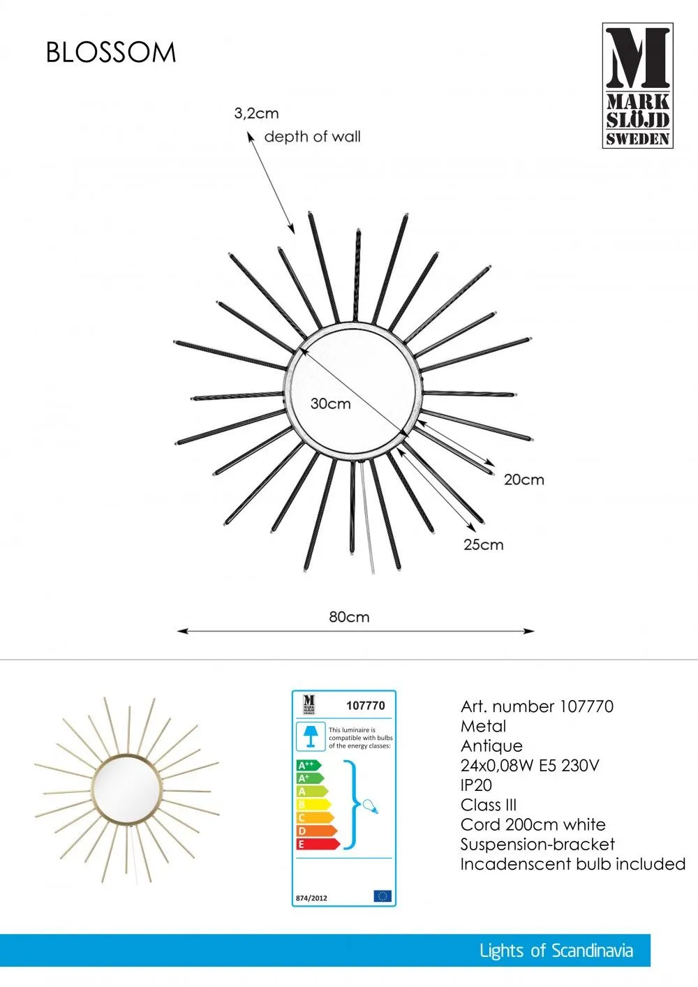Markslöjd BLOSSOM Beltéri fali lámpa E5 24x0,8W arany