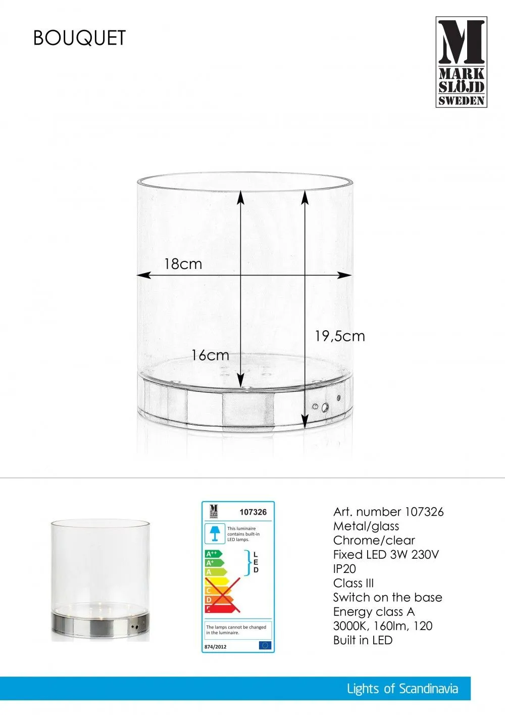 Markslöjd BOUQUET wazon stolowy 19cm Chrom/Przezroczysty