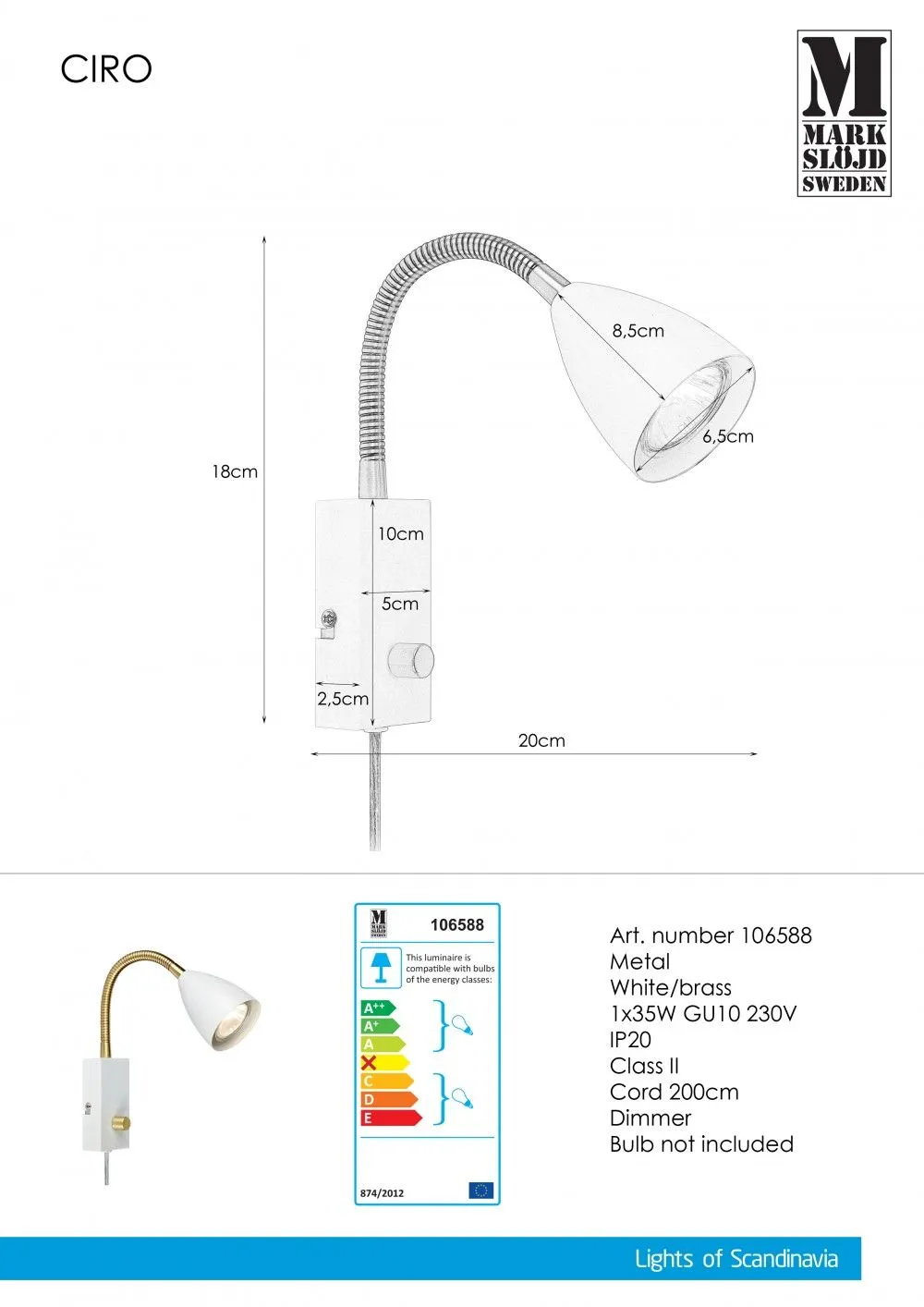 MARKSLÖJD CIRO Fali Lámpa Flex Fehér