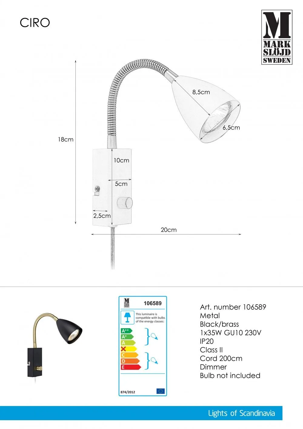 MARKSLÖJD CIRO Fali Lámpa Flex Fekete