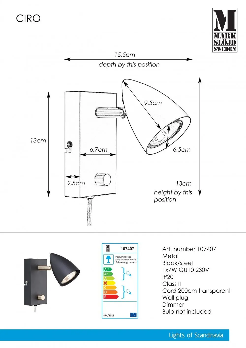 Markslöjd CIRO Kinkiet 1L Czarny/Stal