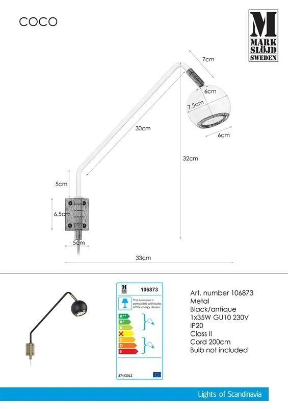 MARKSLÖJD COCO Fali fekete/AB
