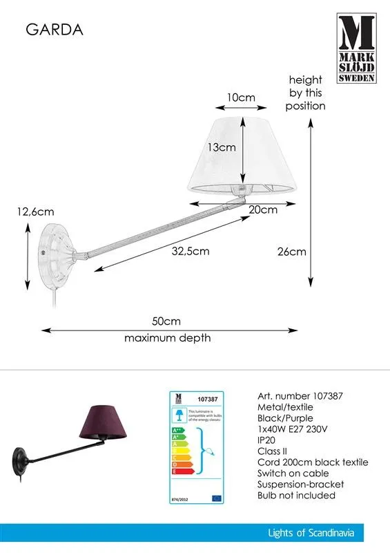 Markslöjd GARDA Kinkiet 1L Czarny/Fioletowy /KIFUTÓ CSAK A KÉSZLET EREJÉIG!!/