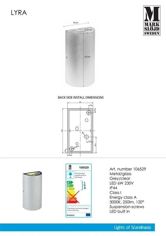 MARKSLÖJD LYRA kültéri homlokzatvilágító Fali lámpa2L Light Szürke /KIFUTÓ CSAK A KÉSZLET EREJÉIG!!/