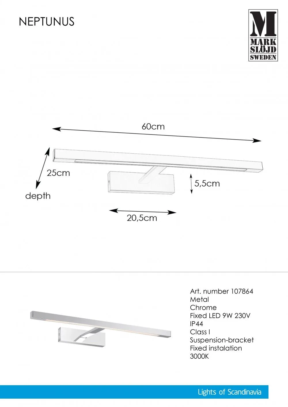 Markslöjd NEPTUNUS Wall 9W LED Chrome IP44