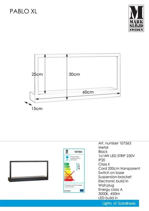Markslöjd PABLO XL fali lámpa fekete