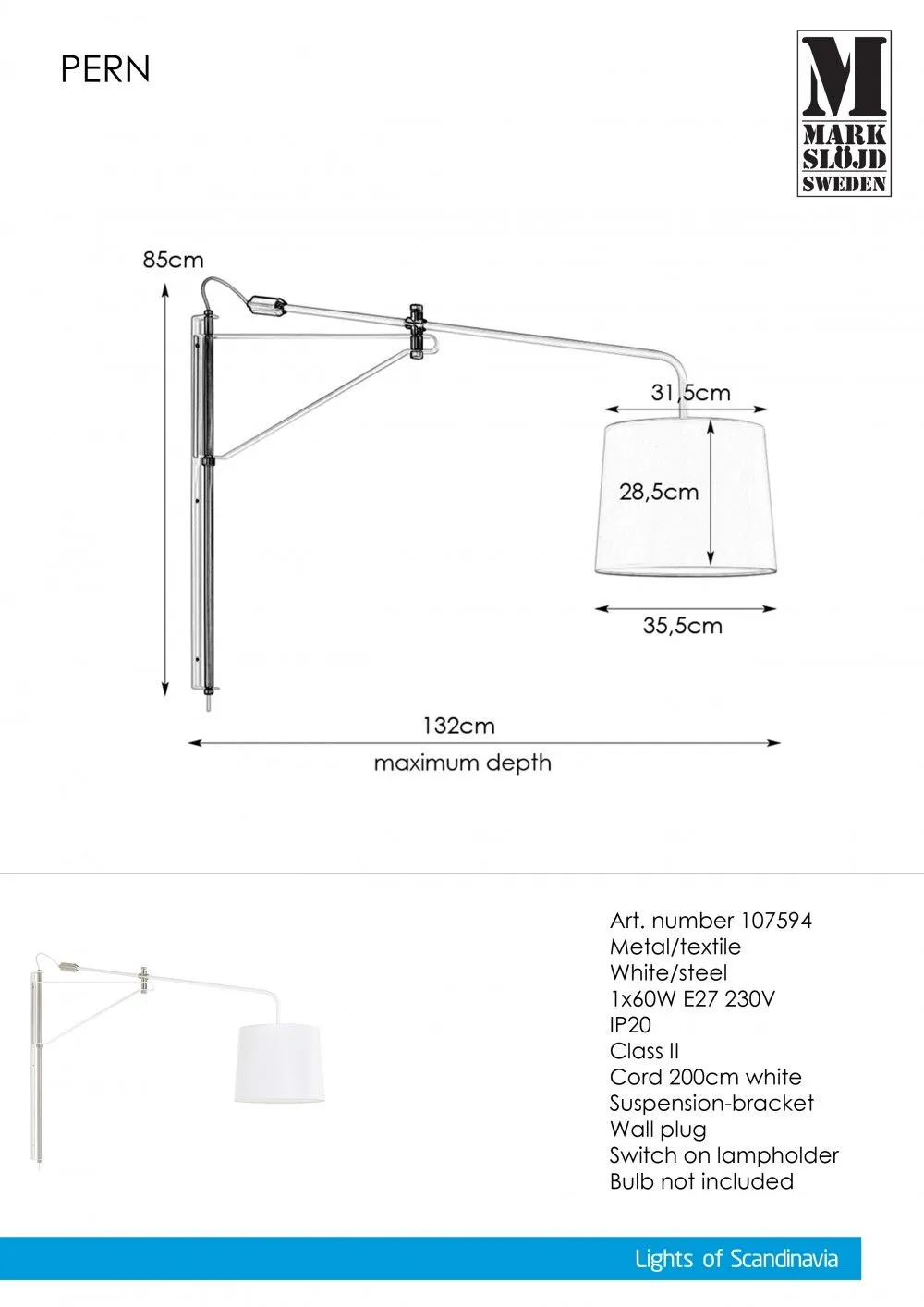 Markslöjd PERN Beltéri fali lámpa E27 60W fehér