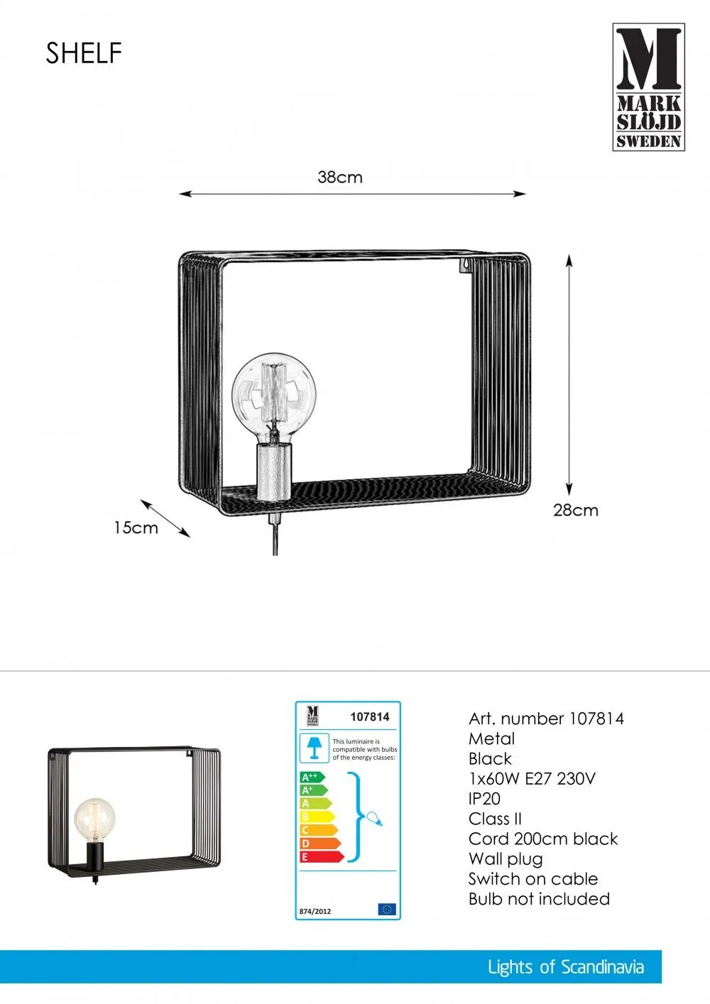Markslöjd SHELF Fali 1L Fekete