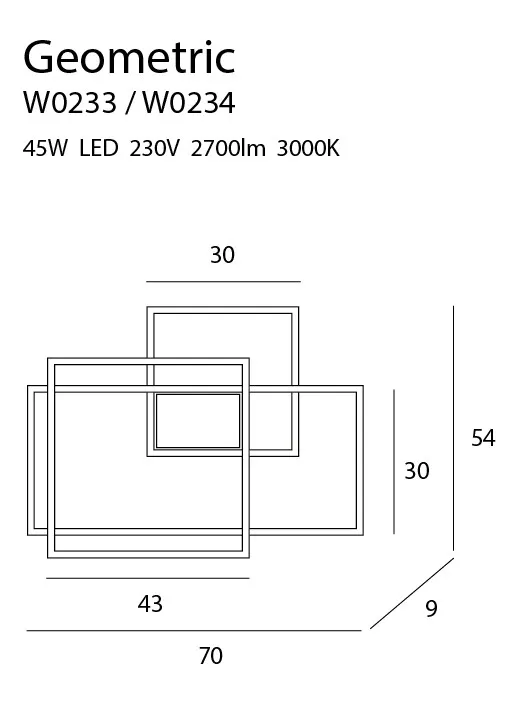 Maxlight GEOMETRIC Beltéri fali lámpa LED 45W meleg fehér 2700lm fehér