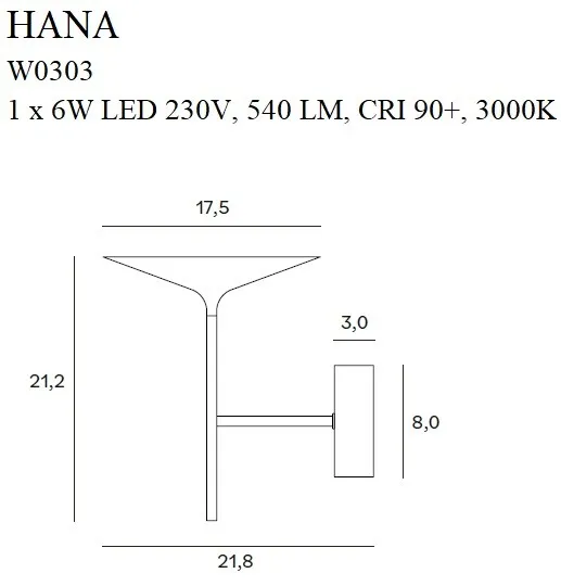 Moc/Power: 1 x 6W LED 230V, 540 LM, CRI 90+, 3000K_x000D_ W: 17,5 cm, D: 21,8 cm, H: 21,2 cm_x000D_ Wykończenie/Detail finishing: czarne/black_x000D_ Materiał/Material: aluminium, akryl/ aluminium, acrylic_x000D_ LED w komplecie/LED included 3000K