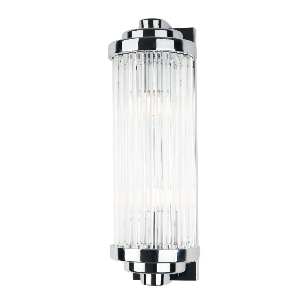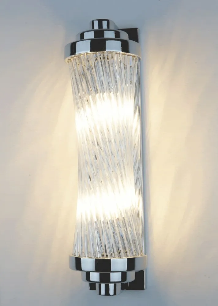 Moc/Power: 2 x 40W E14 230V_x000D_ W: 10 cm, D: 16 cm, H: 46 cm Wykończenie/Detail finishing: chrom/chrome_x000D_ Materiał/Material/: metal, szkło/metal, glass_x000D_ Nie zawiera żarówek/bulbs excluded