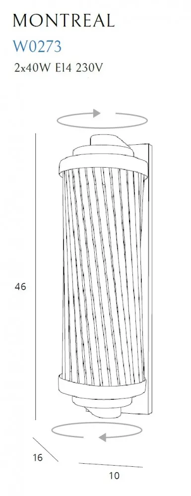 Moc/Power: 2 x 40W E14 230V_x000D_W: 10 cm, D: 16 cm, H: 46 cmWykończenie/Detail finishing: mosiądz/ brass_x000D_Materiał/Material/: metal, szkło/metal, glass_x000D_Nie zawiera żarówek/bulbs excluded