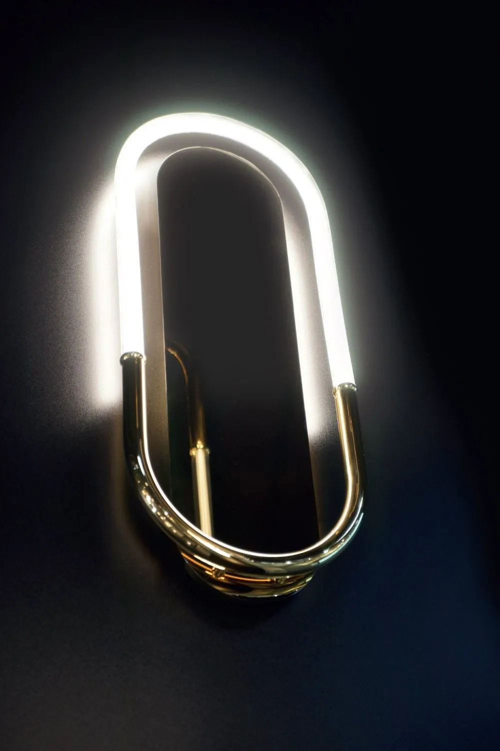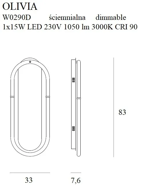 Moc/Power: 1 x 15 W LED 230V, 1050 LM, CRI 90, 3000K_x000D_ W: 33 cm, D: 7,6 cm, H: 83 cm_x000D_ Wykończenie/Detail finishing: złote/gold_x000D_ Materiał/Material: stal nierdzewna, szkło acrylowe, silikon/ stainless steel, acrylic glass, silicon _x000D_ Zasilacz + LED ściemnialny w komplecie/ Triac dimmable LED + driver included_x000D_ nie zawiera ściemniacza ściennego/ wall dimmer not included