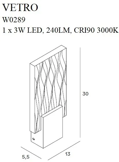 Moc/Power: 1 x 3W LED 230V, 240 LM, CRI 90, 3000K_x000D_ W: 13 cm, D: 5,5 cm, H: 30 cm_x000D_ Wykończenie/Detail finishing: złote/gold_x000D_ Materiał/Material: stal nierdzewna, szkło/ stainless steel, szkło _x000D_ LED w komplecie/LED included 3000K