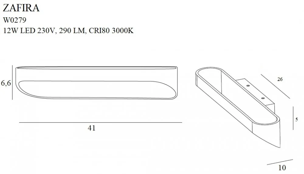 Moc/Power: 12W LED 230V 480 LM, CRI80 3000K_x000D_ W: 41 cm, D: 10 cm, H: 6,6 cm_x000D_ Wykończenie/Detail finishing: czarne/black_x000D_ Materiał/Material/: metal/metal_x000D_ LED w komplecie/LED included 3000K