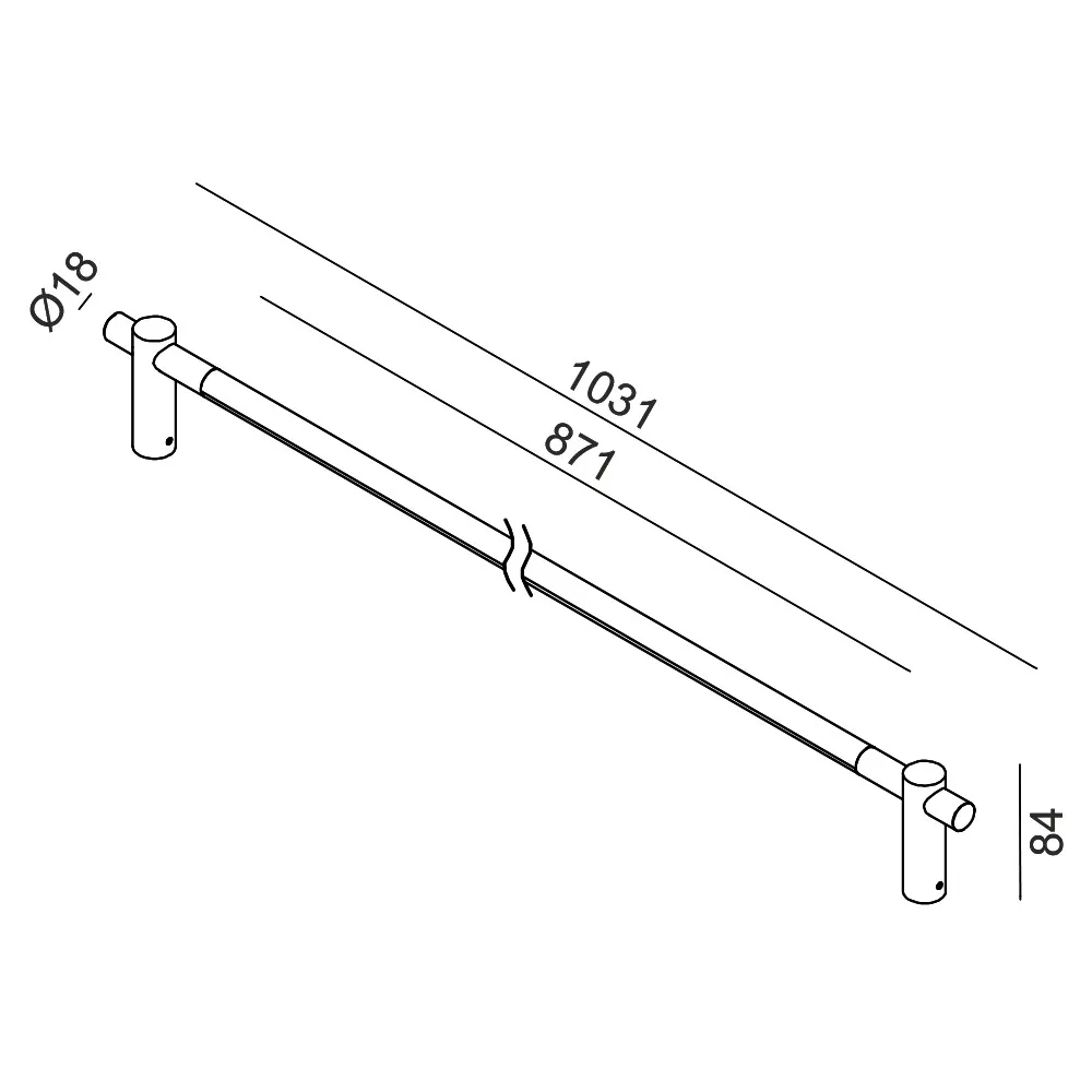 Surface mounted luminaire SLIMLINE. L1031mm, D18mm, sp84mm, Bridgelux 2835, 8W LED, 3000K, DC 48V power supply not included, 640Lm, CRI>90, IP 20, matte diffuser, brass color - LTX-10.1810.8.930.BR