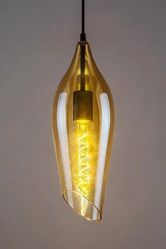 A gyönyörű, légies formatervezésű Bellini egyes függeszték modern nappalink berendezésének stílusos, egyedi darabja lehet. Különösen jó választás azokba a szobákba, amelyekben a fekete és a földszínek dominálnak. A fémből készült fekete lámpát alul nyitott, ferdén elvágott, kecses tulipánra emlékeztető borostyánszínű üvegbúra egészíti ki. A lámpafejet textilkábel köti össze a kisméretű, kerek, fekete dísztalppal. A Bellini egy darab legfeljebb 60 W teljesítményű fényforrással használható, a foglalat típusa E27. Ehhez a szemet gyönyörködtető függesztékhez ízlésünktől és az elérni kívánt hatástól függően választhatunk meleg vagy természetes fehér fényű fényforrást. A lámpa méretei a következők: magassága 400 mm, átmérője 140 mm, belógása 1000 mm, beépítési átmérője 120 mm. A Bellini egyes függesztéket fényforrás nélkül szállítjuk.