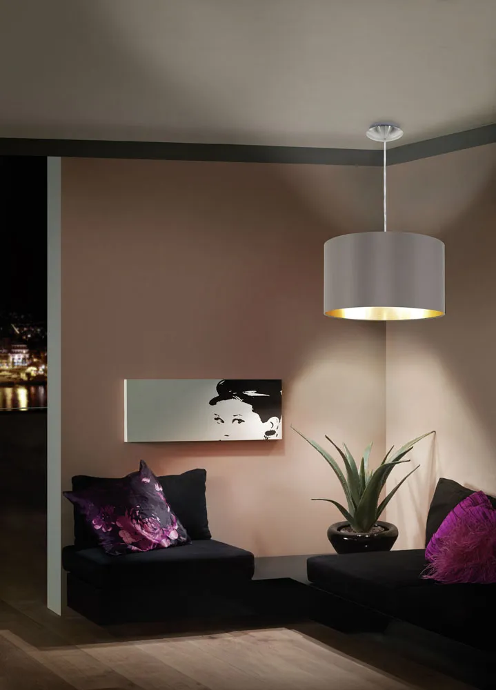 Beltéri függeszték, textil E27 60W cappucino/arany Maserlo