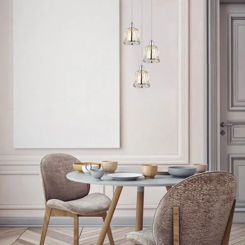 A klasszikus stílusban készült Calypso hármas függeszték a nappali, a hálószoba, az étkező, esetleg a konyha berendezésének látványos és elegáns darabja lehet. A krómszínű, fém lámpatestet átlátszó üvegbúrák egészítik ki, a lámpa nagyméretű, kerek dísztalp segítségével rögzíthető a mennyezeten. A harang alakú, kristályszerű búrák, amelyek mind eltérő magasságban függnek, finoman megtörik a kifelé áramló fényt. A függeszték anyagai és színei tisztaságot és eleganciát sugároznak. A lámpa három darab, egyenként legfeljebb 40 W teljesítményű fényforrással használható, a foglalatok típusa E14. Ízlésünktől és attól függően, hogy mely helyiségben szereljük fel a lámpát, választhatunk hozzá meleg vagy természetes fehér fényű fényforrásokat. A Calypso hármas függeszték méretei a következők: egy-egy búra átmérője 120 mm, a lámpa belógása 1150 mm, beépítési átmérője 200 mm. Ezt a modellt fényforrások nélkül szállítjuk.