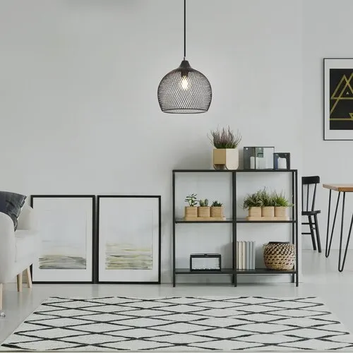 A Ronan függesztéket elsősorban azoknak ajánljuk, akik kedvelik az indusztriális stílusú lámpákat. A fémből készült, fekete színű Ronan jellegzetességét a rácsos búra adja, amelyen sejtelmesen szűrődik át a fény, sajátos hangulatot kölcsönözve ennek a modellnek. A kerek dísztalppal szerelt függeszték remek választás lehet modern nappalinkba, ahol kontrasztot alkothat a világos színű bútorokkal, vagy belesimulhat a sötétebb árnyalatú berendezésbe. A lámpa egy darab, legfeljebb 40 W teljesítményű (energiatakarékos) fényforrással használható, a foglalat típusa E14. Ha a meghitt, otthonos hangulatot szeretnénk erősíteni a szobában, válasszunk hozzá meleg fehér fényű fényforrást. A Ronan búrájának átmérője 180 mm, a függeszték belógása 1270 mm. A Ronan függesztéket fényforrás nélkül szállítjuk.