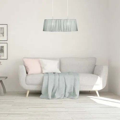 A vintage stílusban készült Pixie függeszték textil búrája két fényforrást rejt. A fém lámpatestet hosszúkás, lekerekített sarkakkal készült fém dísztalp egészíti ki. A búra jellegzetességét a menta színű, ráncolt anyag adja, amely szoknyaszerűen borul rá a lámpatestre, és romantikus megjelenést kölcsönöz a függesztéknek. A lefelé enyhén szélesedő lámpaernyő alól finoman szűrődik ki a fény, kellemes atmoszférát teremtve az adott helyiségben. A Pixie két darab, legfeljebb 60 W teljesítményű fényforrással használható, a foglalatok típusa E27. Ha a meghitt, otthonos hangulatot szeretnénk erősíteni, válasszunk hozzá meleg fehér színű fényforrásokat. A függeszték teljes szélessége 700 mm, belógása 1460 mm. Ezt a modellt fényforrások nélkül szállítjuk.