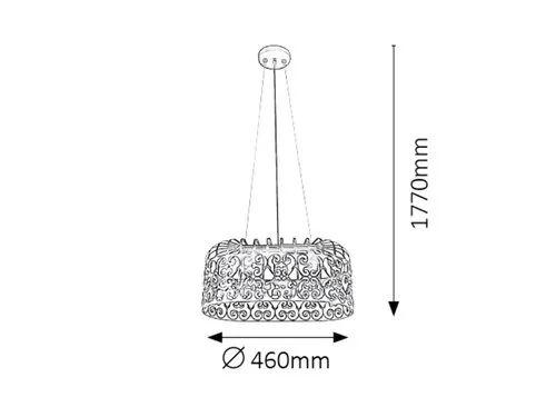 Vintage stílusú függeszték 2 db foglalattal. 177 cm lelógású, matt fekete színű, fém szerkezet és 46 cm szélességű lámpabúra. A lámpatest E27-es foglalatkialakítású, 2x max. 60W teljesítményű fényforrásokkal használható.