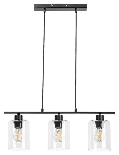 Az indusztriális stílusú Miroslaw függeszték modern nappalink, hálószobánk vagy dolgozószobánk berendezésének jellegzetes darabja lehet. A matt fekete színű, fém lámpatestet három henger alakú, átlátszó üvegbúra egészíti ki, amelyek teljes egészében látni engedik a lámpa belsejében a fényforrásokat. A függeszték hosszúkás, szögletes dísztalp segítségével rögzíthető a mennyezetre, amelyet két, textilből készült tartókábel köt össze a lámpafejeket tartó rúddal. A Miroslaw három darab, egyenként legfeljebb 40 W teljesítményű fényforrással használható, a foglalatok típusa E27. Ha világos, modern hatást szeretnénk elérni, válasszunk a lámpához természetes fehér fényű fényforrásokat. A Miroslaw függeszték méretei a következők: szélessége 600 mm, belógása 1220 mm, egy-egy búra átmérője 120 mm. Ezt a modellt fényforrások nélkül szállítjuk.