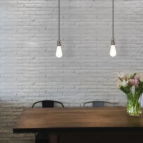 Indusztriális stílusú függeszték 1 db foglalattal. 80 cm lelógású, fekete színű fém szerkezet és foglalat, szövött ’vasalókábel’ vezetékkel. A függeszték E-27-es foglalatú, max. 40W teljesítményű energiatakarékos fényforrással, így akár a különleges megjelenésű, ST58-as formájú, energiatakarékos filament LED izzóval is használható.