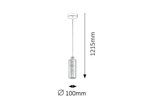 Modern megjelenésű függeszték 1 db foglalattal. 121,5 cm-es fix lelógású, króm színű fém szerkezet és 10 cm átmérőjű, mintás üveg lámpabúra, IP20-as védelemmel. A lámpatest E27-es foglalatkialakítású, max. 40W teljesítményű, energiatakarékos izzóval is használható.