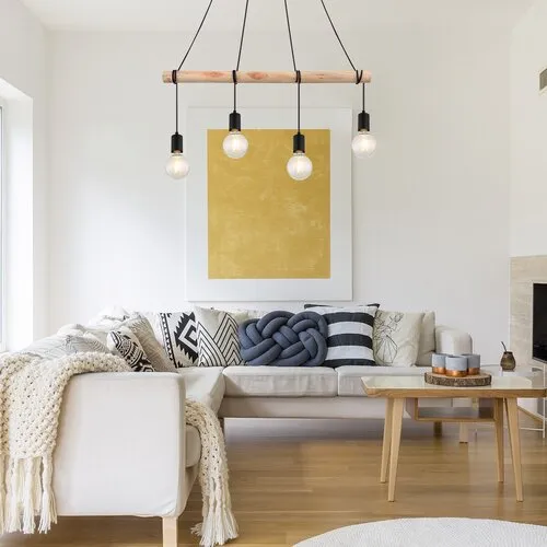 Az indusztriális stílusú Pablo négyes függeszték a nappali, a konyha, az étkező vagy a hálószoba berendezésének jellegzetes darabja lehet. A fémből és fából készült modell matt fekete lámpatestből, fa tartórúdból és szabadon álló fényforrásokból áll, és hosszúkás, szögletes dísztalp segítségével rögzíthető a mennyezetre. A vastag fa tartórúdra tekert tartókábelek végén csüngenek a lámpafejek, amelyek belógása tetszés szerint változtatható. A spotlámpa négy darab, egyenként legfeljebb 40 W teljesítményű fényforrással használható, a foglalatok típusa E27. Ha az otthonos, meghitt hangulatot szeretnénk erősíteni, válasszunk a lámpához meleg fehér fényű fényforrásokat. A Pablo négyes mennyezeti lámpa szélessége 850 mm, belógása pedig 1200–1800 mm között változtatható. Ezt a modellt fényforrások nélkül szállítjuk.