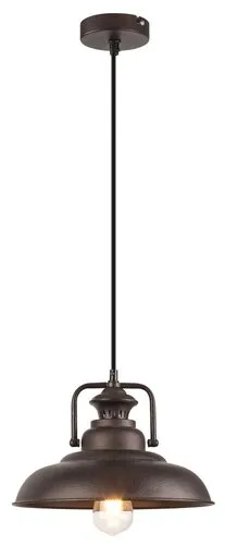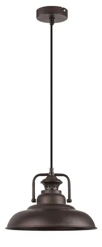 Indusztriális stílusú függeszték 1 db foglalattal. 120 cm lelógású, 31 cm átmérőjű, barna színű, fémből készített test és lámpabúra. A lámpatest E27-es foglalatkialakítású, max. 60W teljesítményű energiatakarékos fényforrással is használható.