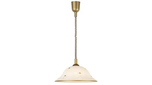 Kézzel festett, így minden darab egyedi, a klasszikus stílusú lámpák kedvelőinek ajánljuk. Klasszikus, egyben elegáns megjelenésű függeszték, 40 cm átmérőjű, kézzel festett, mintás, opálfehér és bronz színű alabástromüveg lámpabúrával. 'Rolly-s', azaz állítható hosszúságú a vezetéke, max. 120 cm hosszig húzható. Használható valamennyi E27-es foglalthoz készített, maximum 60W teljesítményű halogén vagy LED fényforrással.
