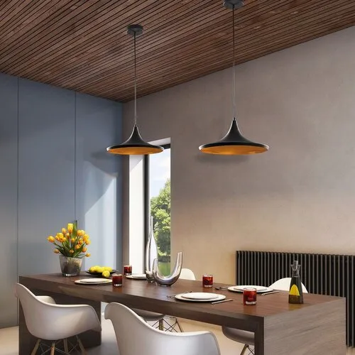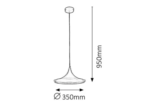 Indusztriális megjelenésű függeszték 1 db foglalattal. 95 cm lelógású, 35 cm búraátmérőjű, fekete színű lámpatest, fekete és arany színű lámpabúra. A lámpatest E27-es foglalatkialakítású, max. 60W teljesítményű energiatakarékos fényforrással is használható.