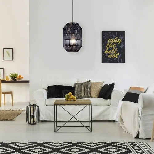 Trópusi stílusú zsinórlámpa függeszték 1 db foglalattal. 145 cm lelógású szerkezet és 20 cm átmérőjű, kék színű textil lámpaernyő. A lámpatest E27-es foglalatkialakítású, max. 60W teljesítményű fényforrással használható.