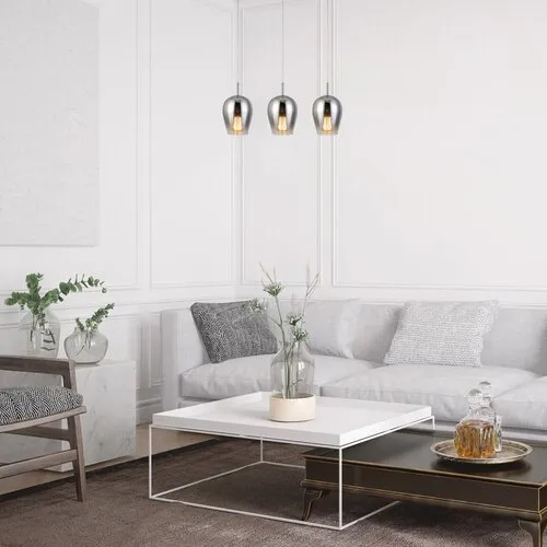 A modern stílusú Petunia egyes függesztéket felszerelhetjük a nappaliban, a konyhában, az étkezőben vagy a hálószobában. A krómszínű, fém lámpatestet színezett üvegből készült, virágkehelyre emlékeztető, kecses búra egészíti ki, a lámpa kisméretű, kerek dísztalp segítségével rögzíthető a mennyezetre. A színezett üvegbúra részben látni engedi a fényforrást, egyben meg is szűri annak fényét, ennek köszönhetően a Petunia hangulatos megvilágítást biztosít. A függeszték egy darab, legfeljebb 60 W teljesítményű fényforrással használható, a foglalat típusa E27. Ha meghitt, otthonos hangulatot szeretnénk teremteni, válasszunk a lámpához meleg fehér fényű fényforrást. A Petunia egyes függeszték méretei a következők: a búra átmérője 140 mm, a lámpa mennyezettől mért távolsága 1300 mm. Ezt a modellt fényforrás nélkül szállítjuk.