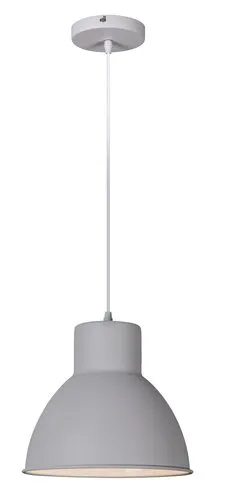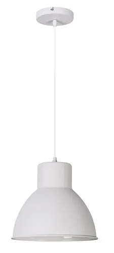 Indusztriális stílusú függeszték 1 db foglalattal. 177 cm lelógású és 27,5 búraátmérőjű fém szerkezet matt fehér színben IP20-as védettséggel. A lámpatest E27-es foglalatkialakítású, max. 60W teljesítményű fényforrással használható.