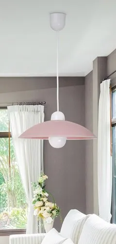 Időtlen megjelenésű függeszték fix kivitelű, 90 cm-es, fehér színű műanyag függesztékkel és 32,5 cm-es ármérőjű, íves kialakítású, rózsaszín üvegbúrával. Az IP20-as védettséget adó lámpatest E27-es foglalatkialakítású, max. 60W teljesítményű fényforrással használható. 5 év garanciával!